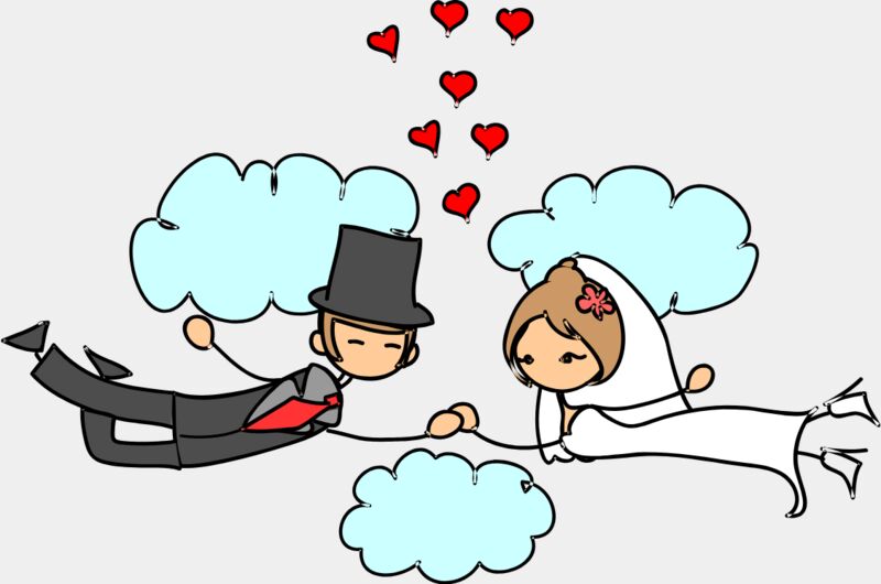 Cartoon Wedding Groom Bride Holding Hands 11