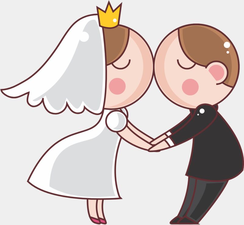 Cartoon Wedding Groom Bride Kiss 2